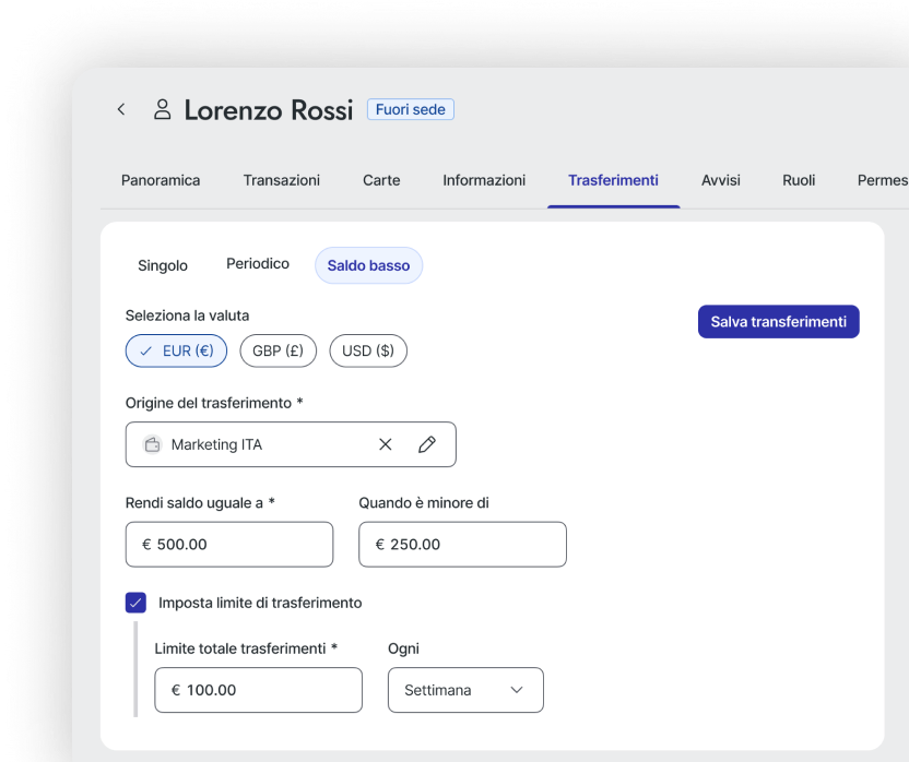 Monitora le spese con avvisi sul saldo e agisci in tempo reale con trasferimenti rapidi.